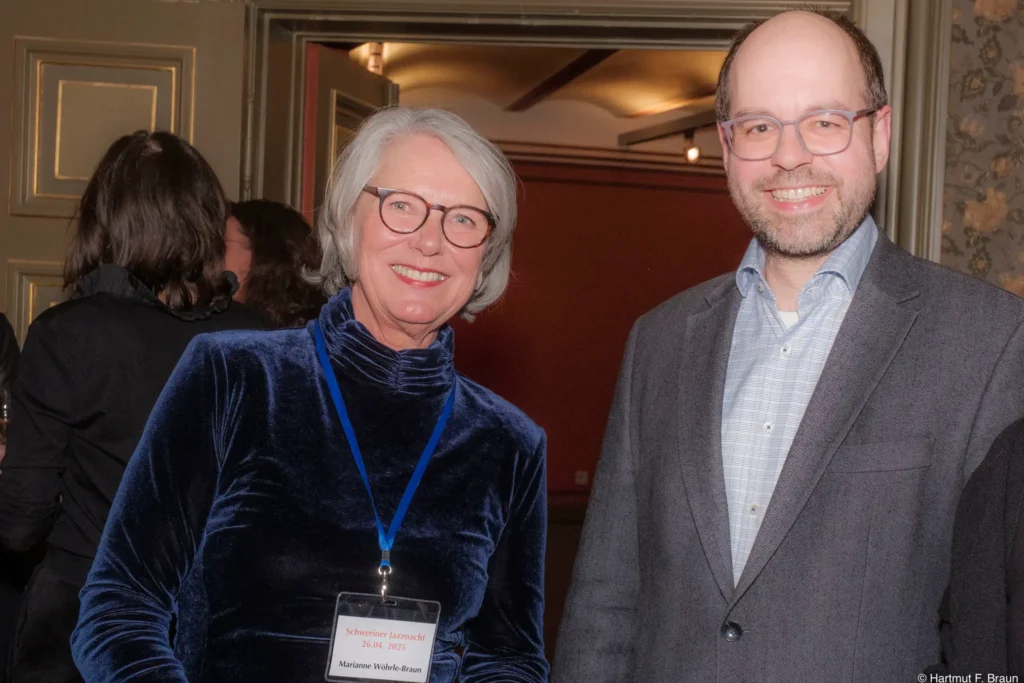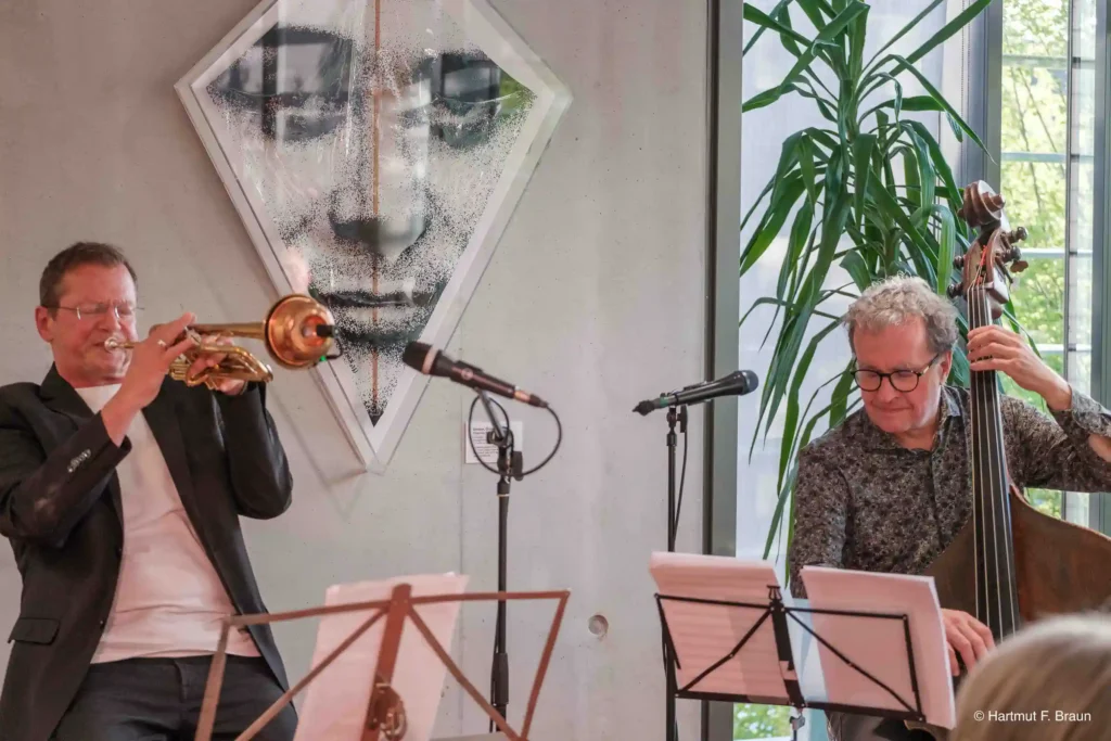 Ein besonderes Konzert zur Schweriner Jazznacht 2025: Ingolf Burkhardt (Trompete) und Florian Galow (Bass) begeisterten am 24. April in der Landesbibliothek Günther Uecker M-V mit Jazzklassikern, persönlichen Einblicken und einer Uraufführung. Der emotionale Abschluss mit „What a Wonderful World“ sorgte für langanhaltenden Applaus.